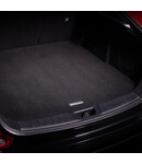 Passgenaue, luxuriöse Teppich-Kofferraummatte aus hochwertigem Velours mit schalldämpfenden Eigenschaften. Die Matte hat eine integrierte Stoßstangenschutzklappe, die herausgeklappt werden kann, um die hintere Stoßstange zu schützen, wenn Gegenstände ein- und ausgeladen werden oder wenn ein Hund in den Kofferraum ein- und aussteigt. Mit "Mazda6e"-Logo aus Metall.