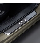 Edelstahl, 4-teilig für vorne und hinten. Vorne: weiße LED Beleuchtung (CX-5 Logo). An-/Abschaltung der Beleuchtung durch Magnetsensor. Automatische Abschaltung nach 30 Sekunden. Keine Verkabelung notwendig, batteriebetrieben.