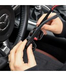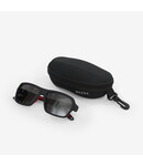 Leichter TR-Rahmen mit Mazda Schriftzug, Silikon-Nasenpads und rote Bügelenden sorgen für Komfort und Stil. Rauchfarbene Gläser mit UV400-Schutz – ideal für sonnige Tage.